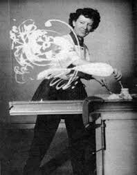 The diminutive Mary Ellen grew up in Texas, and retained a soft southern accent and genteel demeanor throughout her life. She studied painting in Texas and Philadelphia, but felt frustrated by the inability to wield light in a flowing time-continuum. She studied stage lighting at Yale in an attempt to gain the technical expertise to create a which would allow her to paint with living light-and also haunted the studios of electronic genius Leo Theremin and Thomas Wilfred whose Clavilux instrument projected sensuous streams of soft swirling colors.